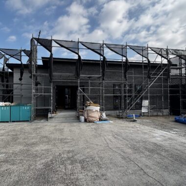 ケイミューの16ミリグレー系、18ミリ白系の板を張りました。真っ黒は威圧感がありますが黒ベースにグレーや白の粒が混ざったような柄なので少し柔らかみを持たせた良い雰囲気です。この板も中空層を持たせて軽量化が施されています。 岡山市エネオス改装工事 前の記事
